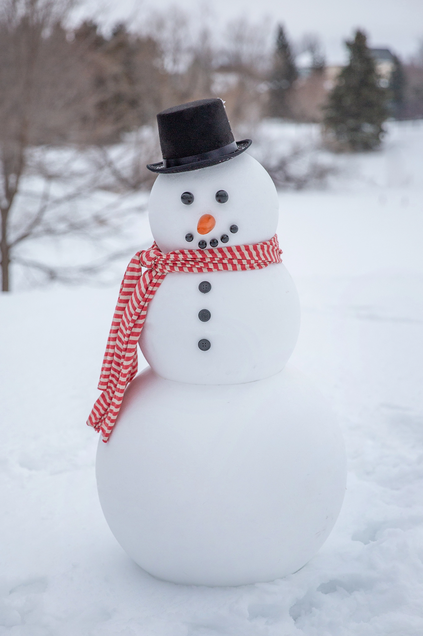 Kathleen Smith Photography in Woodbury Minnesota needed a snowman for a photo shoot but wanted on she could use multiple times with or without a lot of snow on the ground. For the snowman project she purchased a Small Snowman Kit from Universal Foam Products consisting of a 24”, 16” and 12 EPS Sphere, each in two halves. To flatten the surfaces where they sit on top of each other she used an exacto knife. She then sanded the balls with course sandpaper to rough up the surface for texture. The sphere halves were glued together using Testor Modeling Glue and she kept the 3 palls separate for ease of transport. The eyes, nose, mouth and buttons are from a snowman kit purchased from Target. The completed snowman measured 4 foot tall to the top of the hat which makes it the perfect size for photographing with children.
