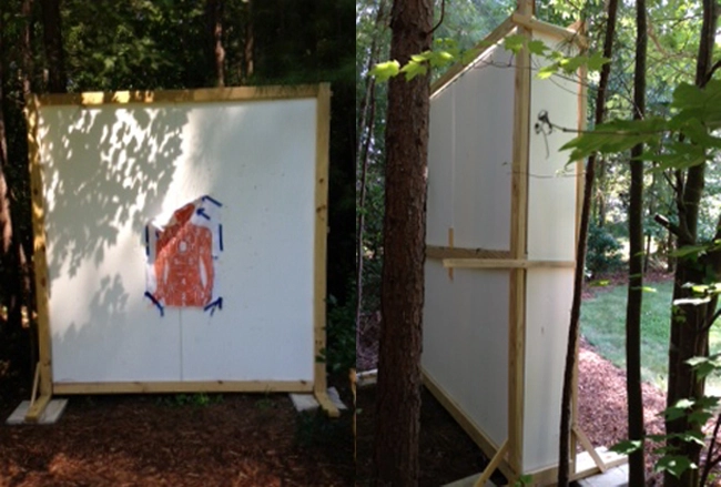 When trying to think of way to make a backstop/target in his backyard for when his son shoot his bow and arrow, Nelson contacted Universal Foam to discuss what product might work best for him. What was decided on was using the 1.80lb Virgin EPS Material. Two large blocks (12” X 48” X 96”) were used to form the backstop/target. A frame was built around the blocks to make sure the blocks stayed in place for when an arrow would hit the Foam. Nelson is very happy with the way the Foam worked out and his son has a great target to shoot at.