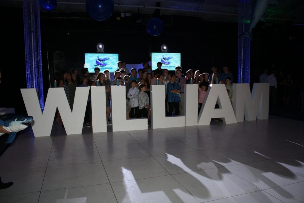 This Bar Mitzvah celebration in Carlstadt, New Jersey was highlighted with the young man’s name in 4 foot tall EPS foam letters. Everyone attending will remember that it was William being honored. The 48 inch tall EPS foam letters were made 8 inch thick so they could stand by themselves without any additional support and act as a base for the candles. The letters were shipped to the site completely protected in a shell of the same EPS that they were cut out of to avoid any shipping damage.
