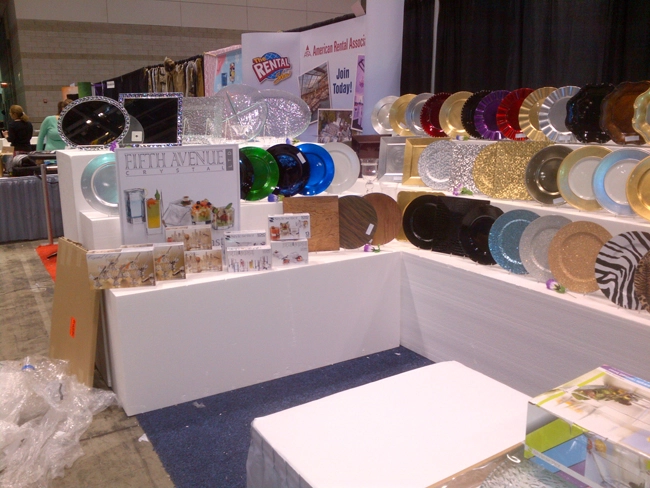 Jay Imports used 1 lb density EPS blocks to create economical displays for their trade show booth in Las Vegas, Nevada. The blocks are inexpensive and shipped from a local facility. The white clean lines of the EPS allowed their colorful plates and chargers to really stand out at the show.