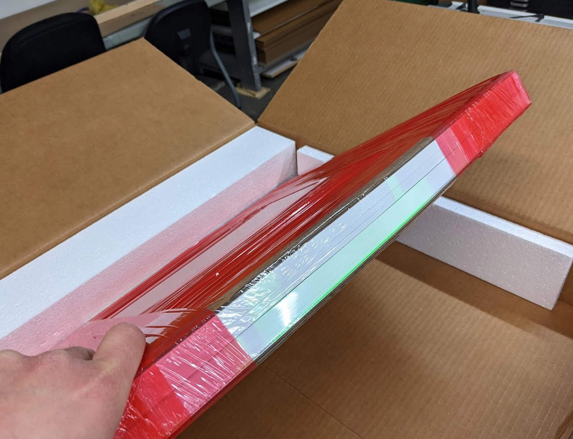 EPS Foam is inserted in custom sized strips, to prevent any damage to these prints, particularly the corners and sides. Though the