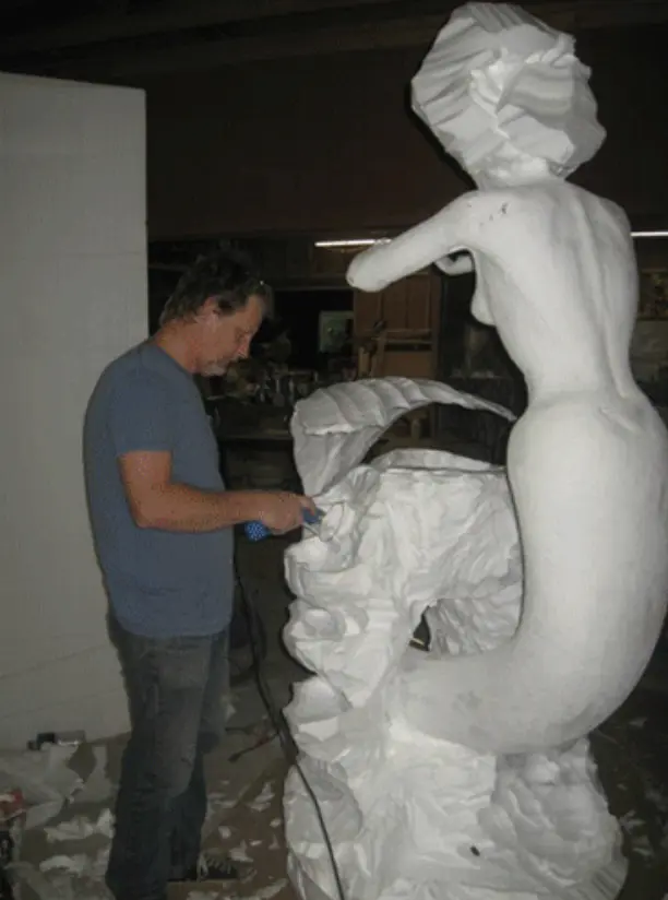 John Herasymiuk, an incredibly talented sculptor from Bush, Louisiana, uses 1 lb density and 1.5 lb density EPS to create amazing sculptures. This particular sculpture, titled La Siren was created from a block of 1.5 lb density expanded polystyrene (EPS) 36” x 48” x 96”. Notice the water starting to drip from her hands and tail. The sculpture will be displayed at the New Orleans Healing Center until October 2014. After that it will be available for purchase.