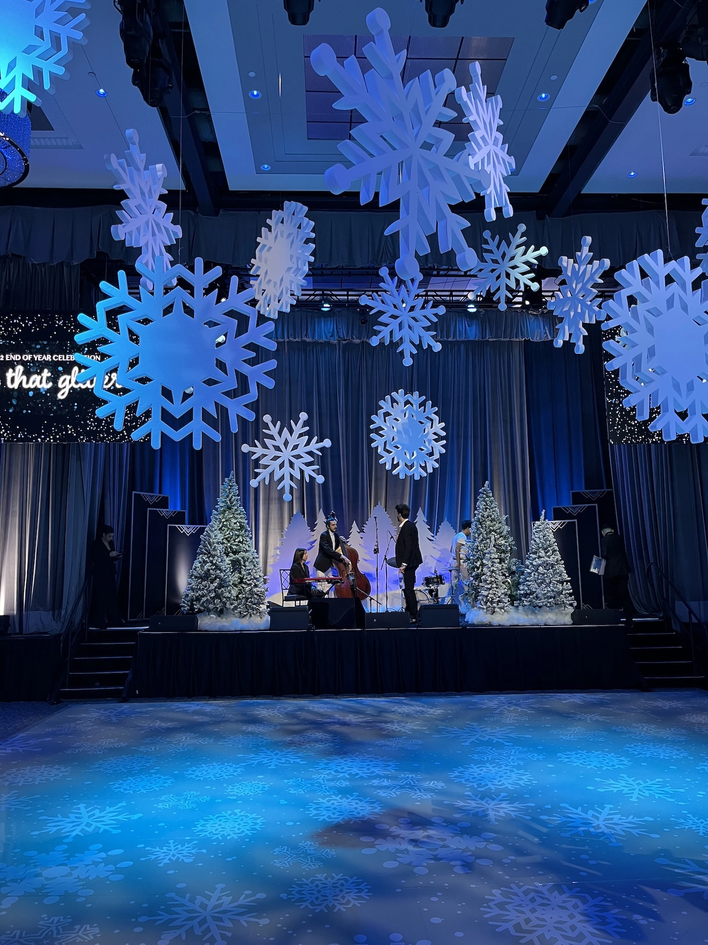 It is about that time of year to Deck the Halls! This design company used the expertise of Universal Foam Products to elevate a holiday bash for a Boston Consulting Group at New York City's Ziegfeld Ballroom. They purchased two different .9 lb Virgin EPS Snowflake Foam designs that were 42 inch diameter. These intricate snowflakes were suspended from the ceiling with delicate fishing line, adding a dash of sparkle and festive charm that undoubtedly sparked lively conversations among the guests igniting the holiday spirit. For your next event or holiday party, consider calling Universal Foam Products not only for snowflakes but also Foam numbers, letters, and all imaginative designs.
