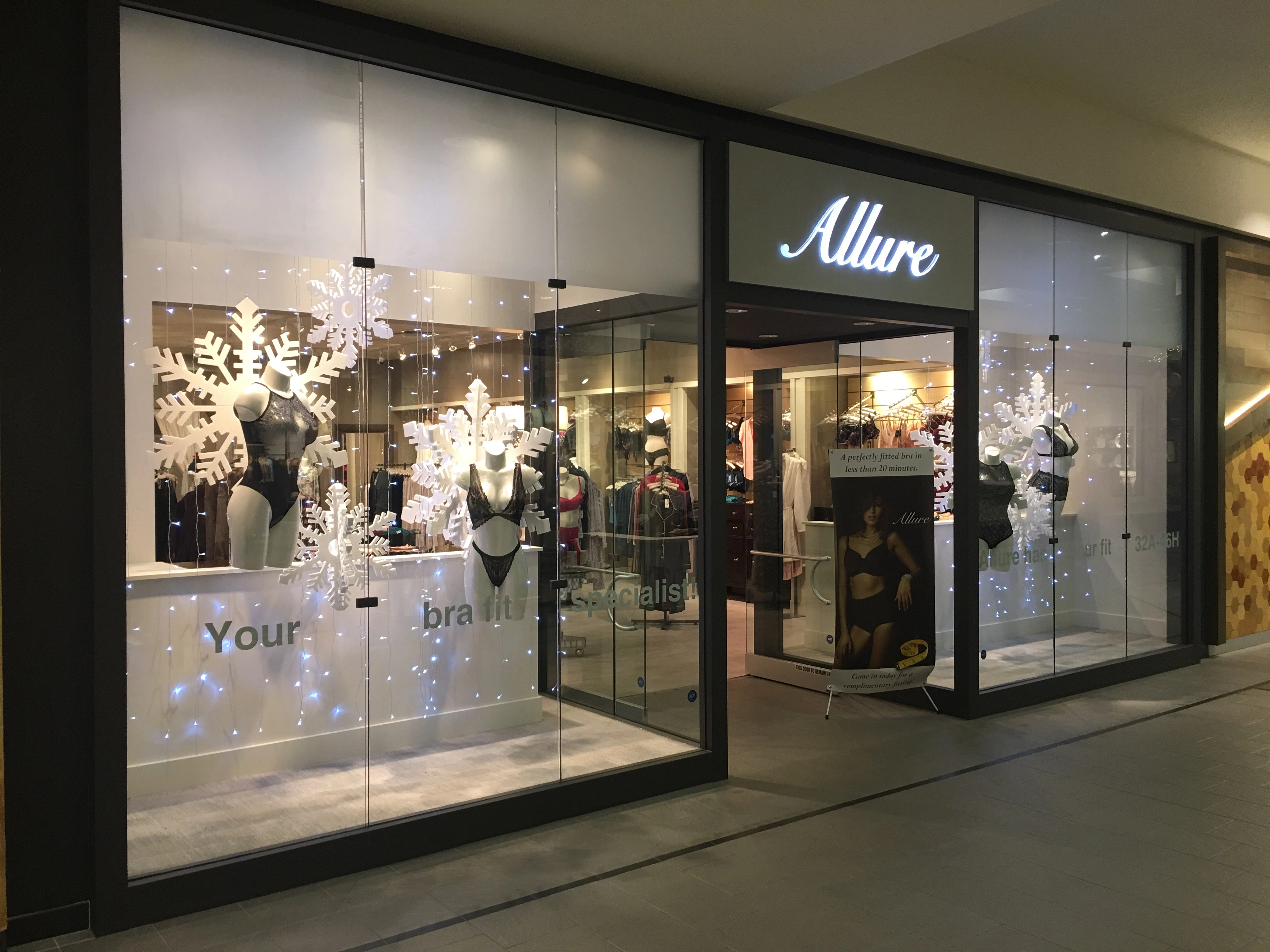 It's beginning to look a lot like Christmas . This Allure Apparel Store in Edina, MN 55435 used our custom Large snowflakes to decorate their window displays. These snowflakes can come in a variety of sizes and designs. They are very lightweight and can be hung easily with fishline.