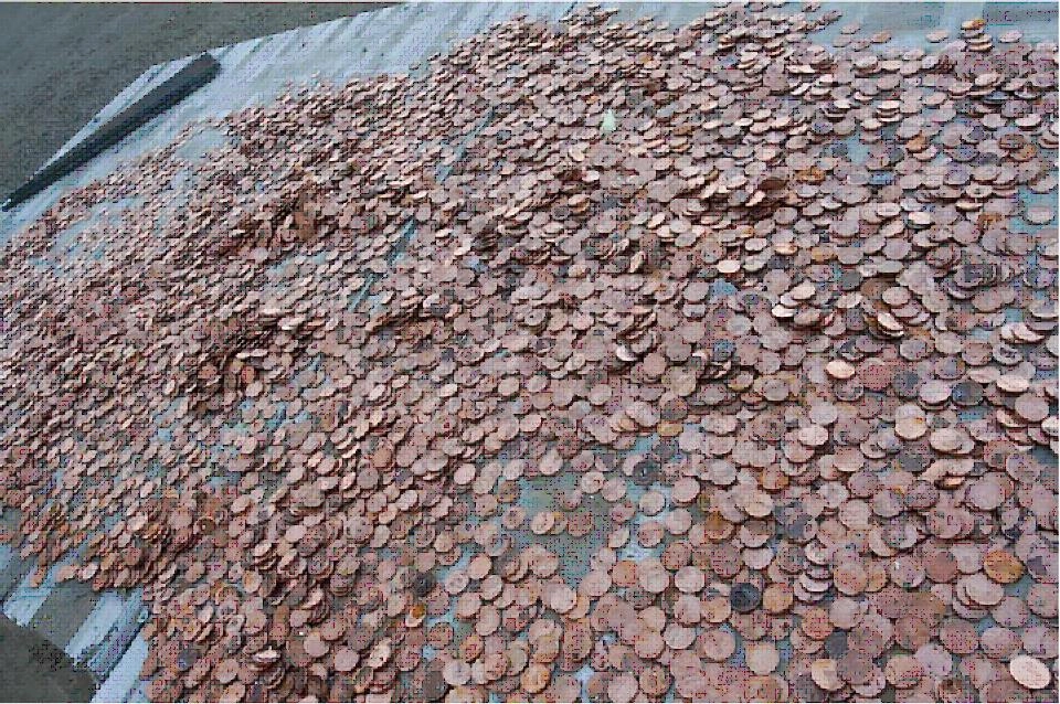 Over 500 cubic feet of 1.35 lb density EPS was used to create this huge EPS foam bear sculpture for the Burning Man Festival in Nevada. 12” thick blocks were laminated together; then the carving process began. The bear was carved using a bow cutter, hot knife and finally sand paper. After the sculpture was carved, thousands of real pennies were glued to the sculpture making it a very unique, very large bear. After the festival ended, the pennies were removed, and the money donated to bear conservation projects in Montana and Canada.