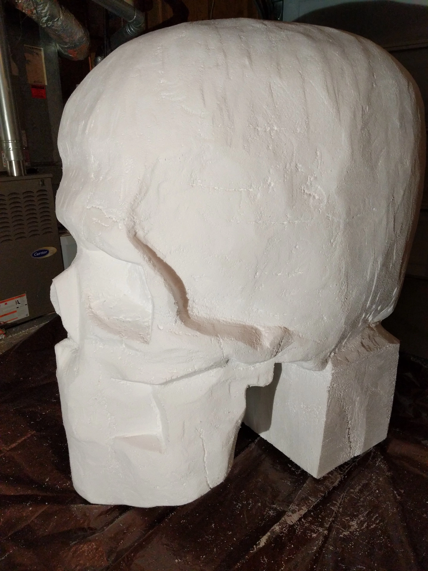 This customer in Kennesaw, GA created a 5 foot foam skull crafted from 1 block of Expanded Polystyrene for Halloween/Dia de Los Muertos. They carved the foam using hand saws and a sander. They then used a standard acrylic paint applied with a sprayer, providing a smooth finish. This will surely scare some Trick-or-Treaters.