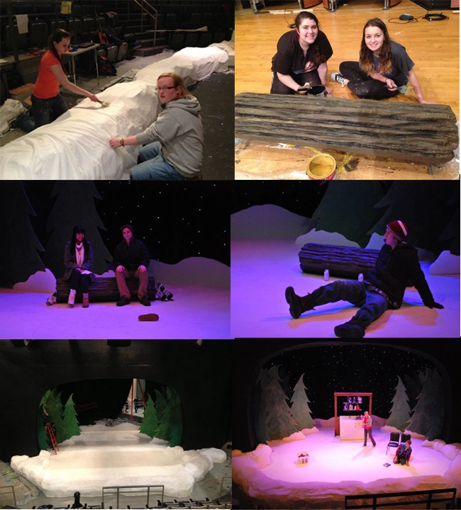 The technical theatre coordinator, Kevin Phelan, at Vernon Hills High School contacted Universal Foam looking for some large blocks of Foam to create stage props for a production of Almost, Maine. They decided to go with 4 blocks of the .9lb Virgin EPS that were 36″ X 48″ X 96″. The large blocks of Foam were then cut in half and carved into the shape of snow piles and were placed around the front of the stage. They also carved a log out of one of the blocks. The set was extremely realistic due to the artistic ability of the participants.