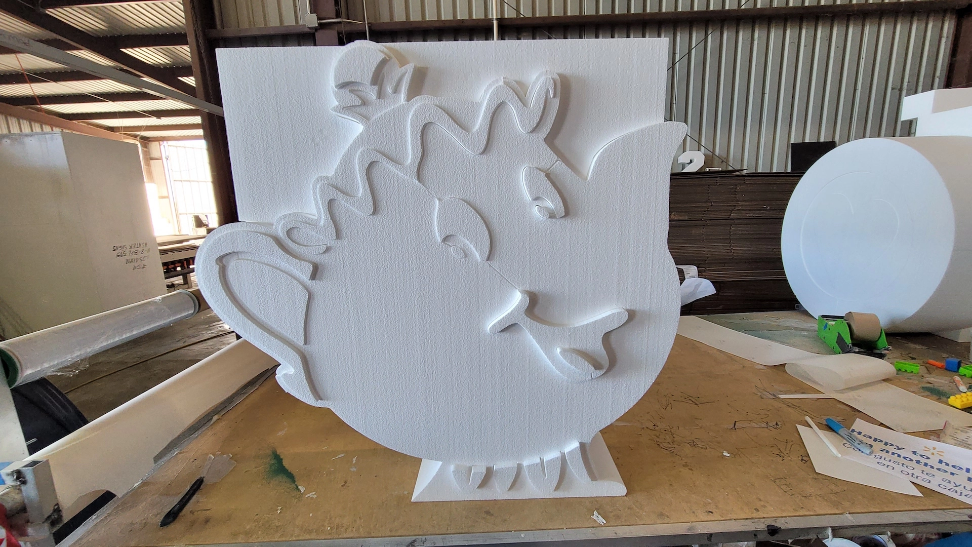 This sign company based just outside of Houston, Texas creates a wide variety of high quality products for many companies and special events. Universal Foam Products has been supplying this sign company with untrimmed foam blocks 49-1/2" x 65" x 96-1/2" in which they cut down to size per the project. EPS foam signs are lightweight, durable, and versatile signage solutions. Expanded Polystyrene foam signs can be coated with various materials, such as acrylics, urethanes, or latex, to enhance their appearance, durability, and weather resistance. The coating provides a smooth and protective finish, making the signs suitable for both indoor and outdoor use. Additionally, the coating process allows for customization, including color matching and the application of graphics or text, making EPS foam signs an excellent choice for advertising and branding purposes.