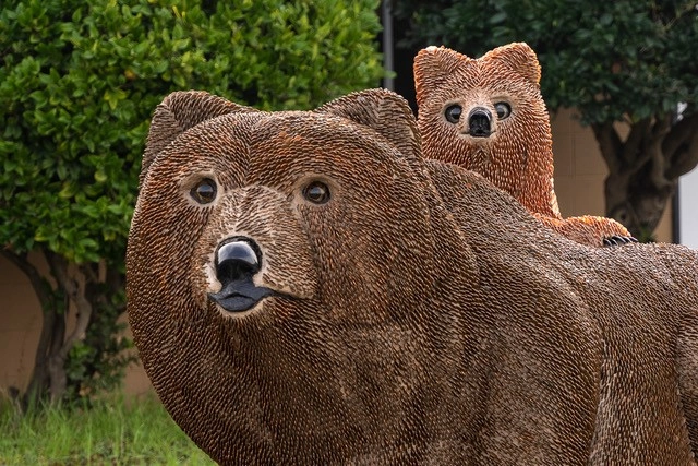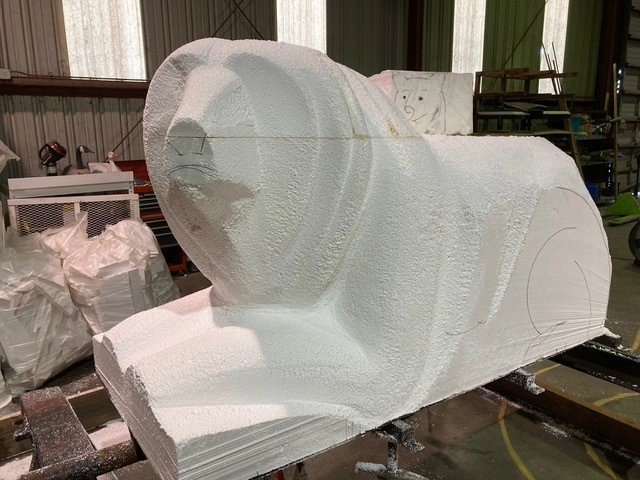 Lisa and Robert Ferguson, artists in Alameda, CA used .9 lb density EPS Blocks to sculpt these incredible pieces of art. The first is a life sized carving of a mother grizzly bear and her cub called 'Mum'. This was hand carved from Large EPS Sculpting Blocks, and was then covered with cement and over 50,000 pennies, which gives the impression of bear fur. When dried to concrete the art is extremely durable and a joy for people to touch and explore. This was built for a Burning Man art exhibition in England at Chatsworth House near Manchester. It will be returning to the USA in the winter.