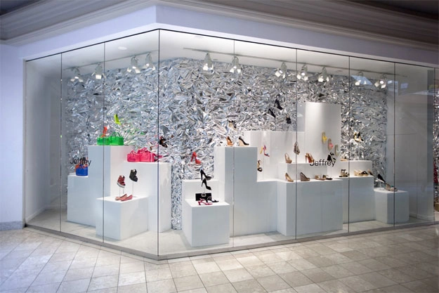 Using STYROFOAM™ or EPS Foam blocks for retail window display is a great idea. One of our client used EPS Foam blocks in a window display in the Jeffrey Atlanta store which offers High end designer clothing, accessories and jewelry and also the 20th anniversary of Christian Louboutin display in the store. STYROFOAM™ brand foam and expanded polystyrene (EPS) blocks and shapes make very economical and elegant retail displays. The material used in the natural state as these EPS blocks were or they can be coated or laminated with a variety of finishes to achieve the look of any desired material. Large letters and number can also be created.